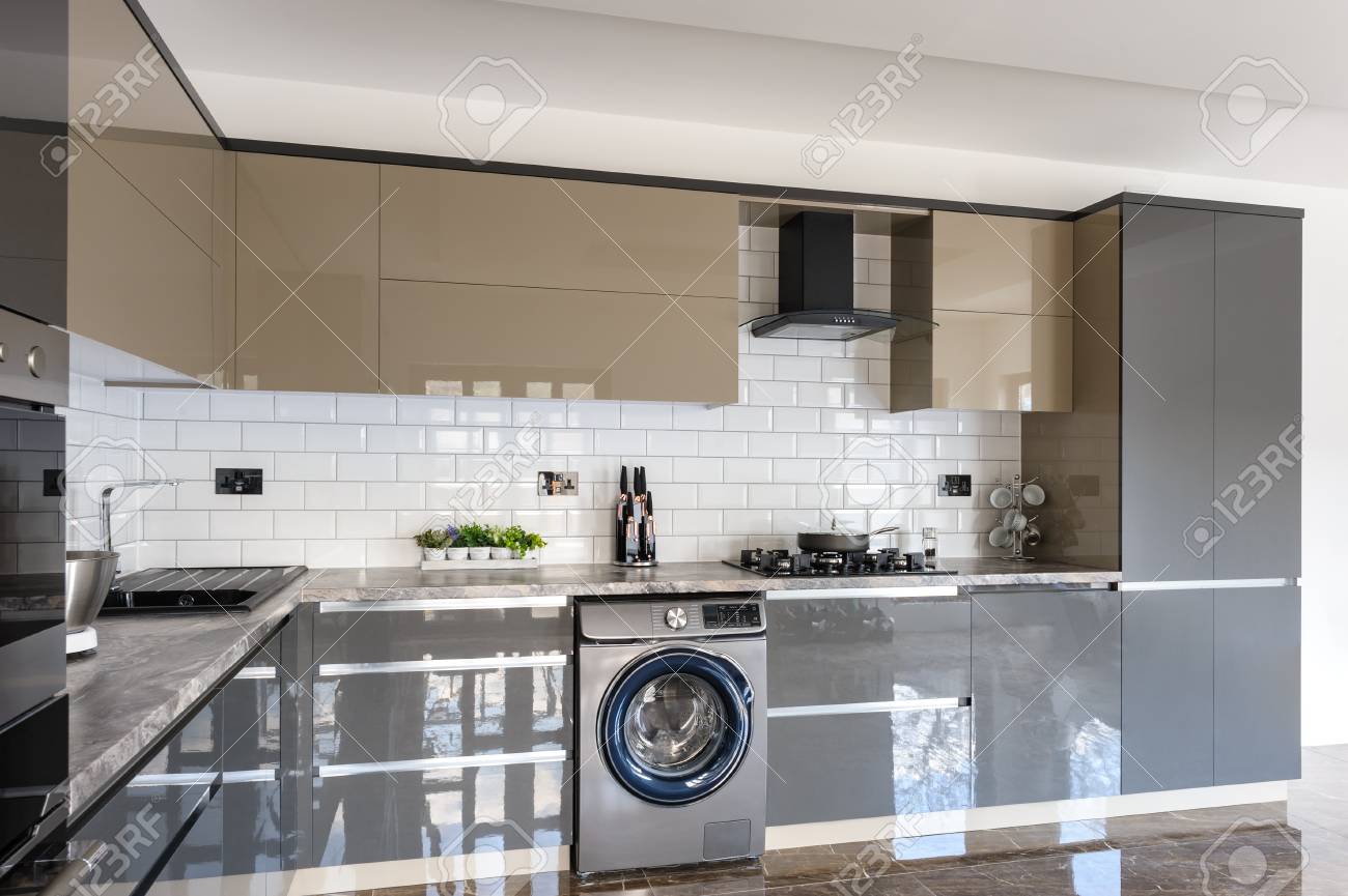 Luxury Modern White Beige And Grey Kitchen Interior